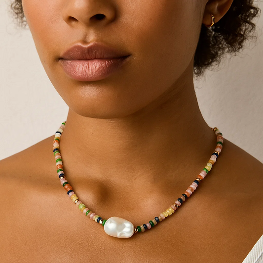 Rainbow Muse Gemstone & Pearl Choker