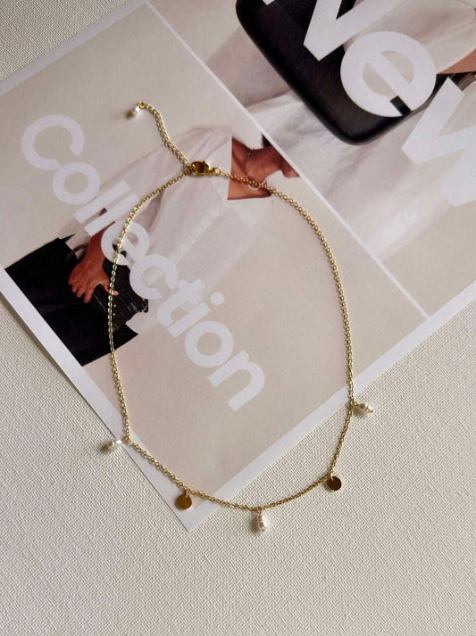 Luna Coin Pearl Choker — Petite Gold Chain Necklace