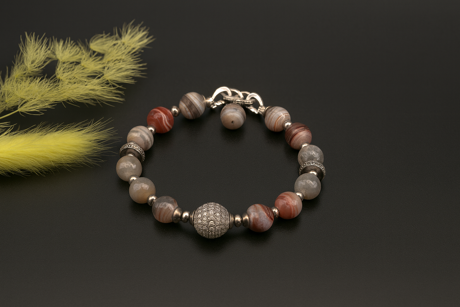• Natural Botswana agate gemstone beads (10mm) with unique banding
