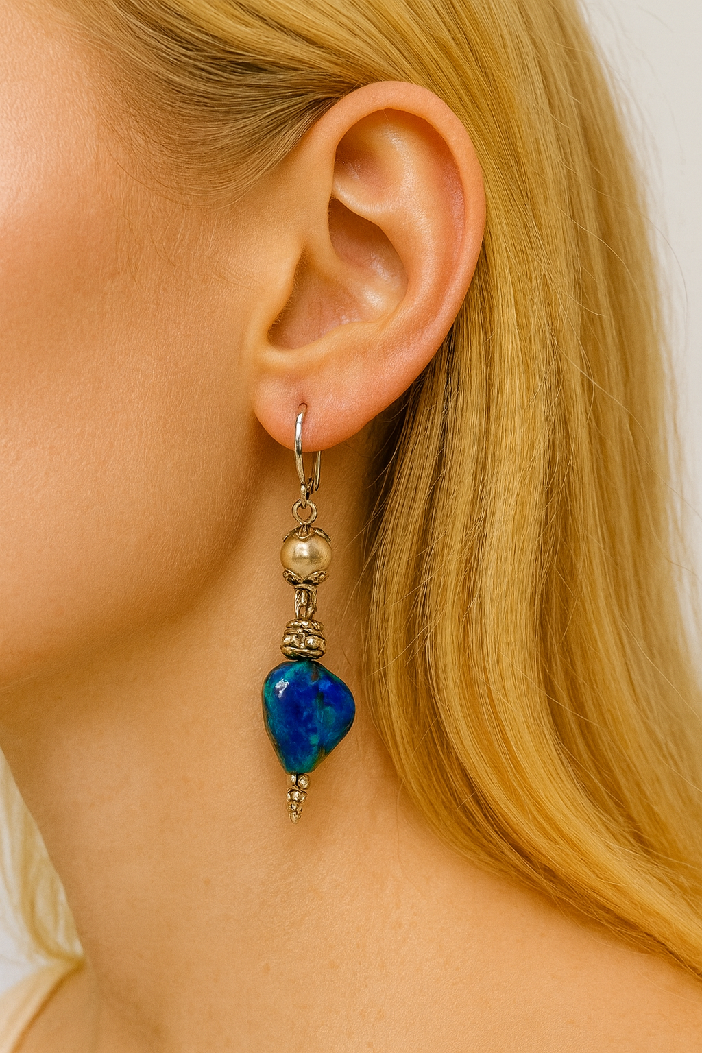 Materials: blue abalone shell beads & charms, faux pearls, silver‑tone alloy & stainless steel ear wires