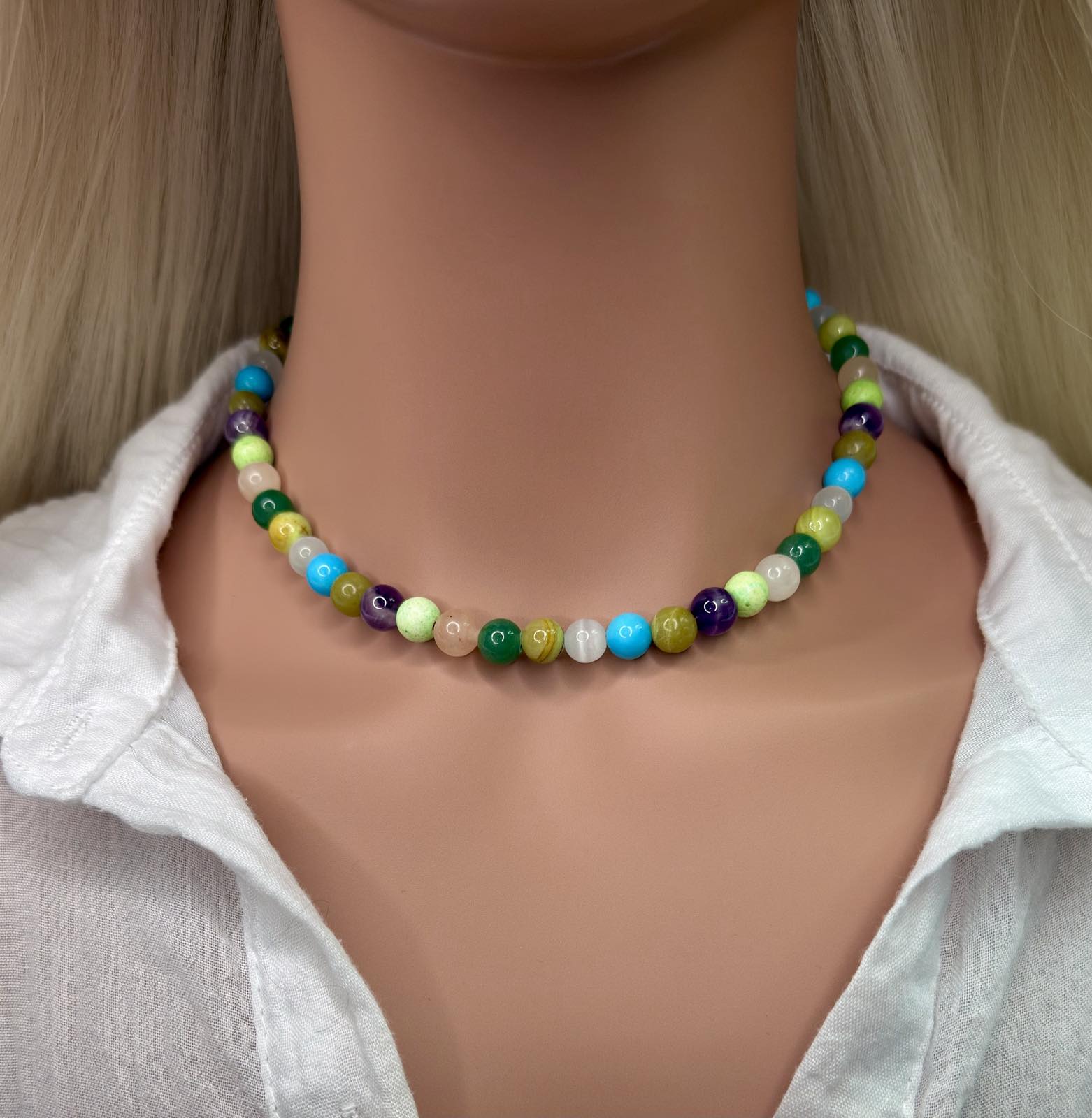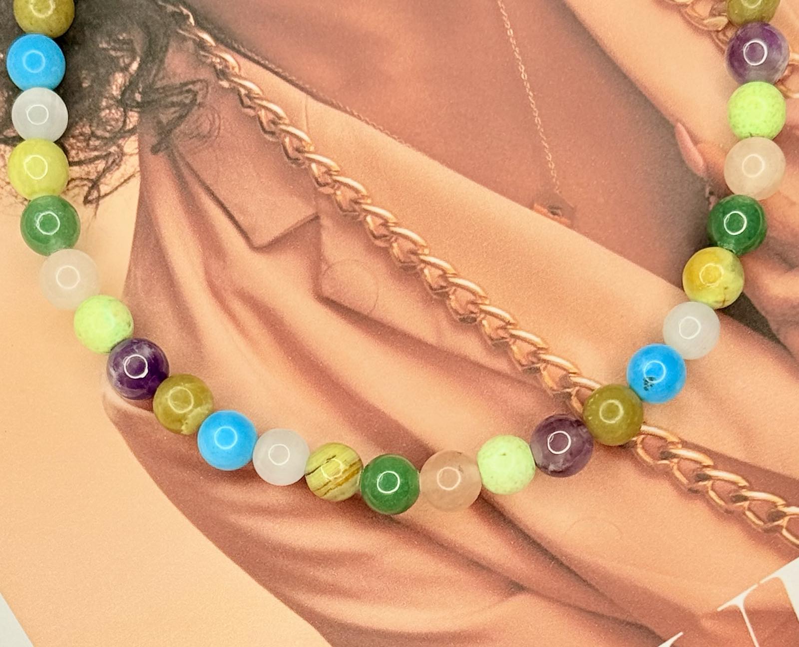• Genuine 8mm natural gemstones (amethyst, jade, turquoise, agate, rose quartz, and more)