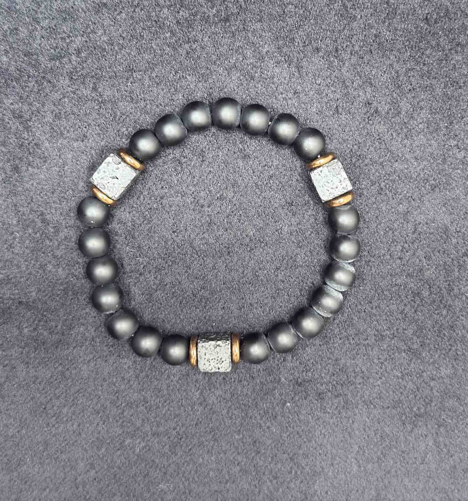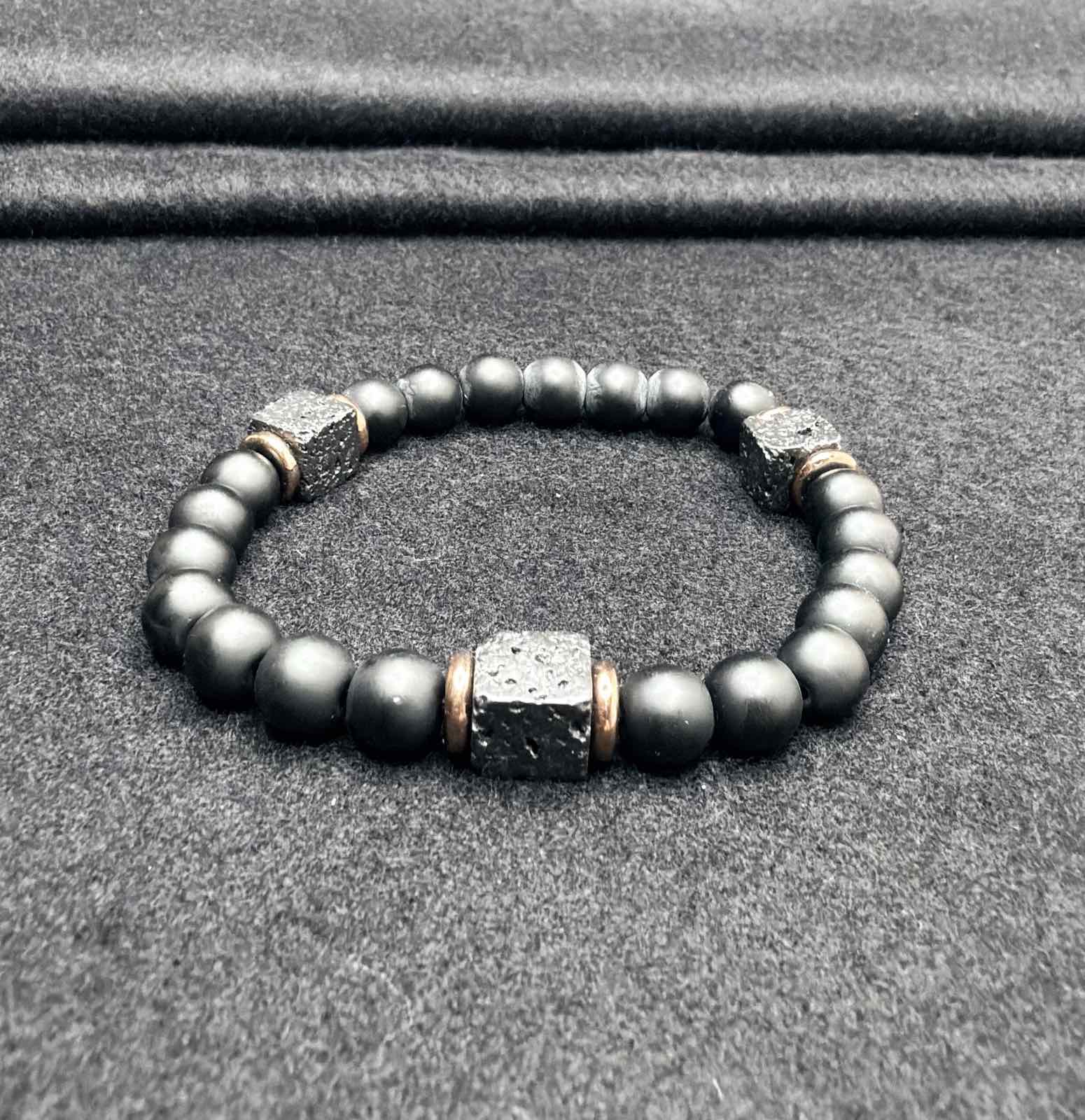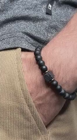 A bold black men’s bracelet with matte beads and rugged cube accents, built for a clean, modern look he can wear with anything. Strong, comfortable and easy to pair with a watch, this is the kind of everyday bracelet that instantly upgrades his style.